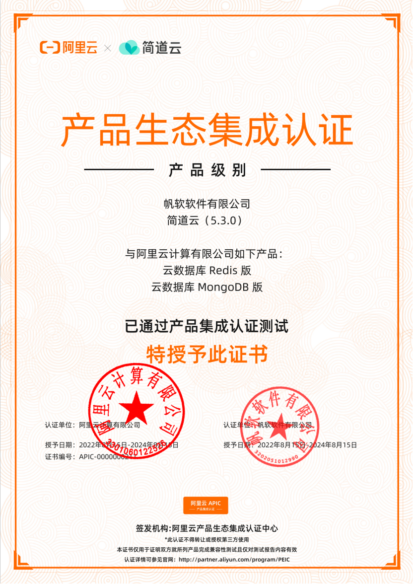 近日,帆软软件与阿里云达成全新技术合作,旗下拳头产品简道云和阿里云MongoDB和Redis完成相互认证,联合打造低代码解决方案,助力制造、零售、建筑等各类行业客户加速数字化转型。