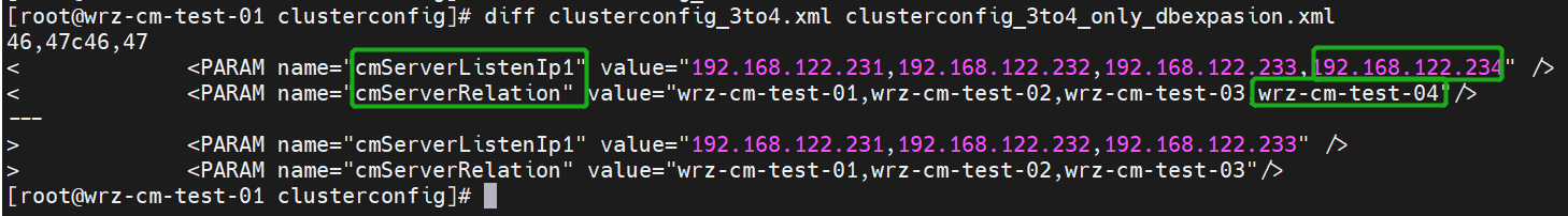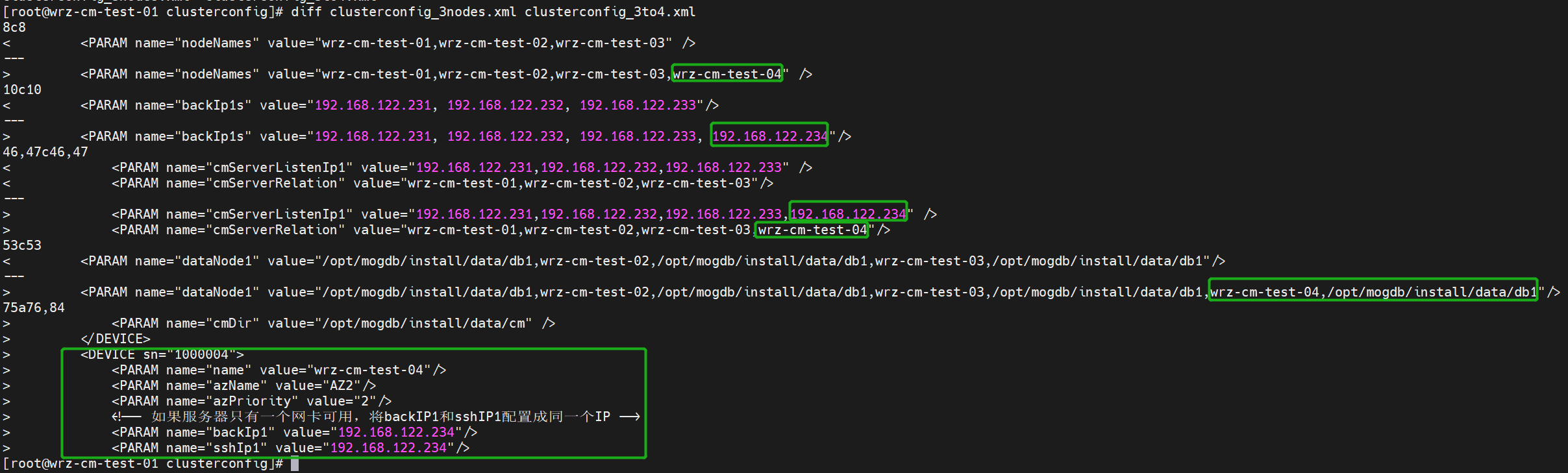 新的集群配置文件clusterconfig_3to4.xml与原始配置文件差异如下图7所示: