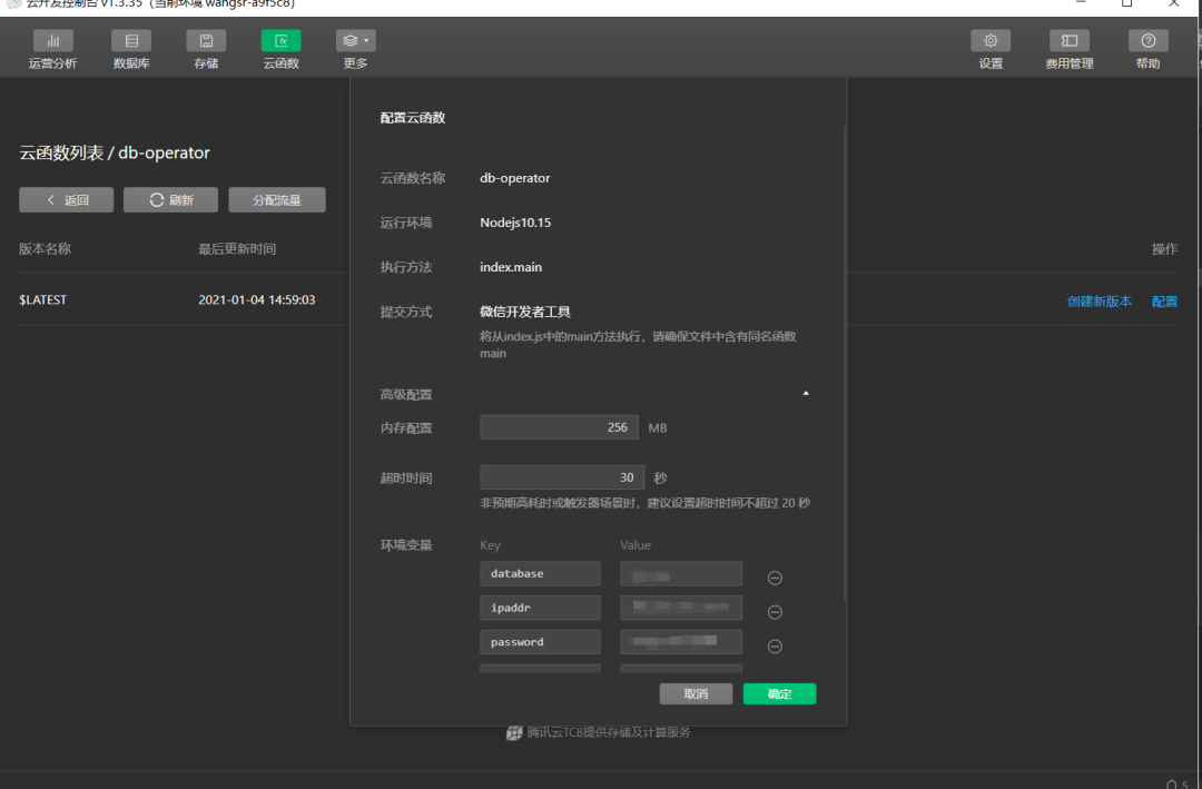 第五步 在云控制台增加环境变量,比如涉及到隐私的数据集地址和密码