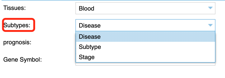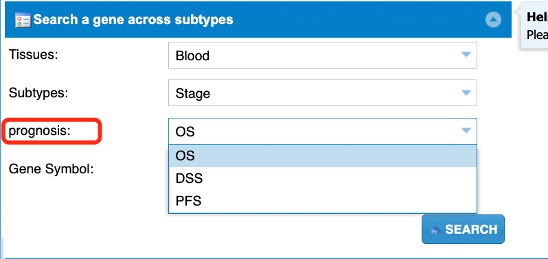 预后这一栏,我们可以选择自己要研究的预后类型。三种常见的都在这里了。