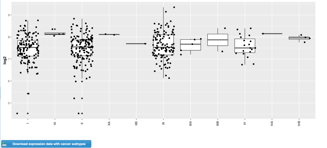 不同分期的表达水平差异。同样可以下载数据来自己作图。