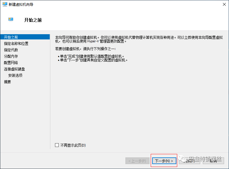 点击右侧操作栏目的新建>虚拟机后会出现配置引导