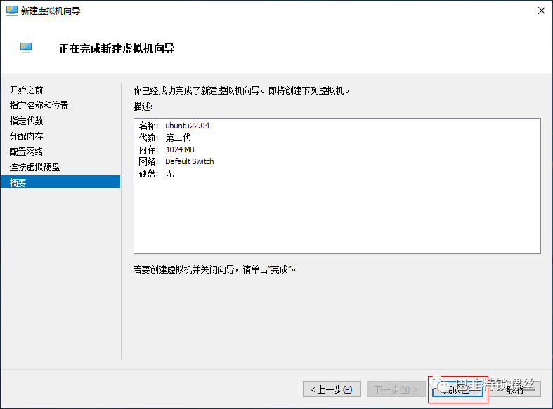 点击完成等待虚拟机配置创建完成。