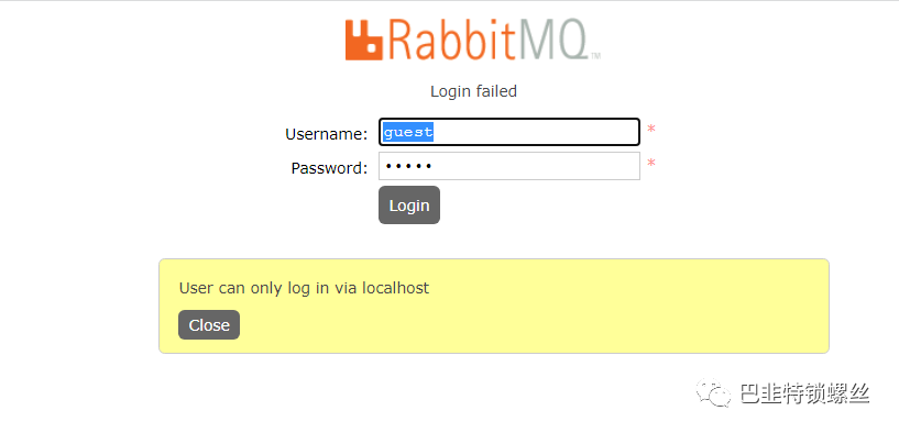 原因:rabbitmq从3.3.0开始禁止使用guest/guest权限通过除localhost外的访问。