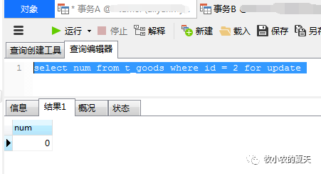 select num from t_goods where id = 2 for update