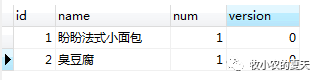 2、然后用户A先买,用户A将(id=1和version=0)作为条件进行数据更新,将数量-1,并且将版本号+1。此时版本号变为1。用户A此时就完成了商品的购买
