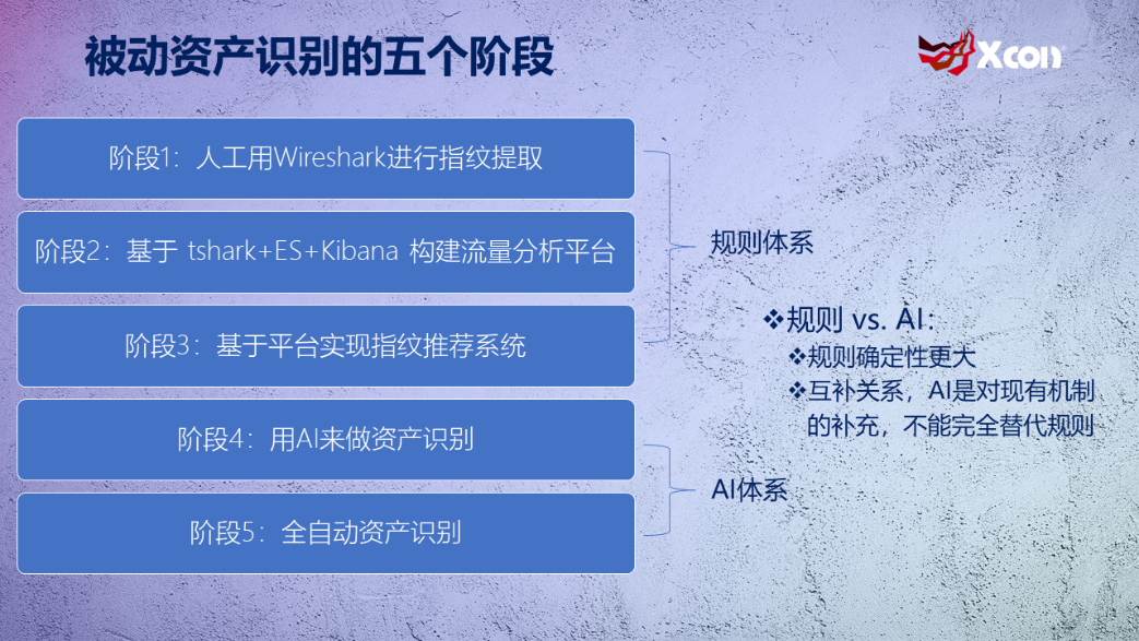 对此,深信服提出了被动资产识别技术的“五个阶段”演讲路线,通过这五个阶段的逐步落实,能够实现资产识别效率和效果逐渐提升。