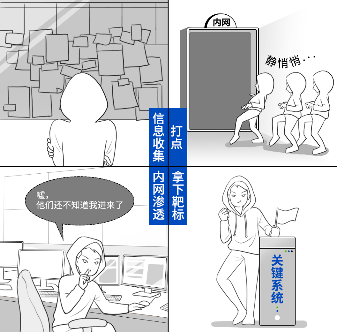 “然后我们就隐匿行迹,潜伏中梳理认证逻辑和访问关系,在成功定位到核心系统之后,一击拿下所有靶标。”