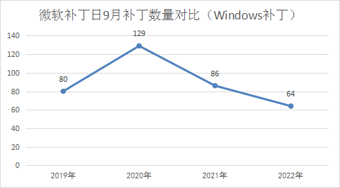2022年9月14日(北京时间),微软发布了安全更新,共发布了 64 个CVE 的补丁程序,同比上月增加了 57 个。