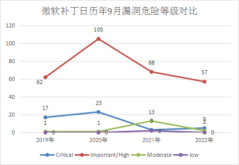 2019-2022年,9月份的漏洞危险等级趋势和数量如下图: