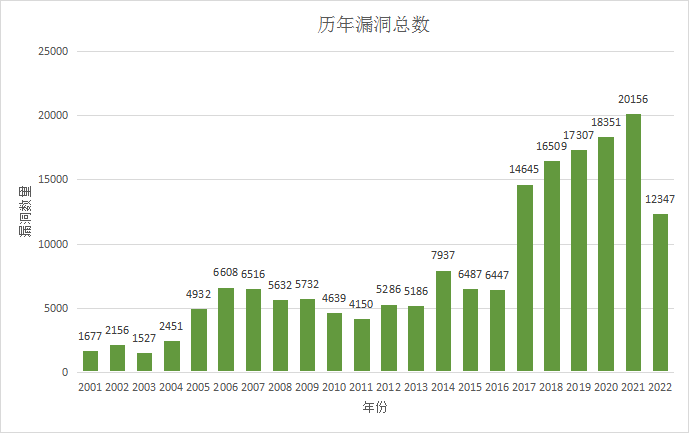 图1 NVD漏洞库 2001 年-2022 上半年漏洞数量统计