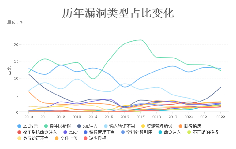 图3 NVD漏洞库2010年-2022上半年漏洞类型占比情况