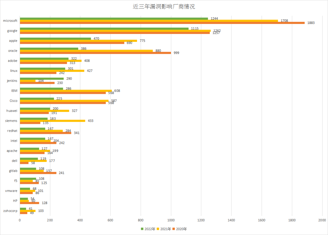 图4 NVD漏洞库近三年漏洞影响厂商分布情况