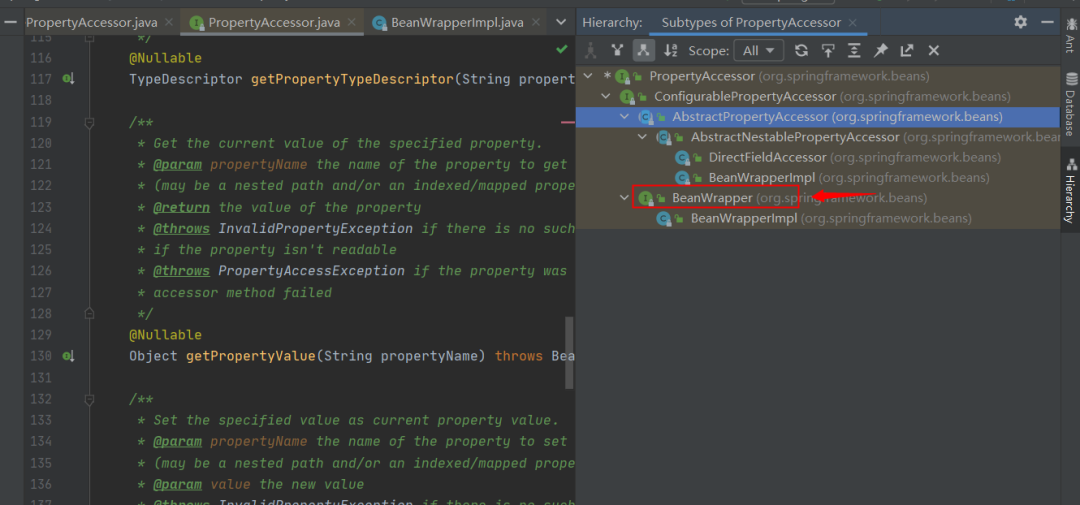 对 Spring-core 漏洞分析之前,首先了解一下 Spring 一个非常重要的组成:属性访问器(PropertyAccessor),它是可以访问命名属性(name properties)的类的公共接口。该接口的作用是存取 Bean 对象的属性。
