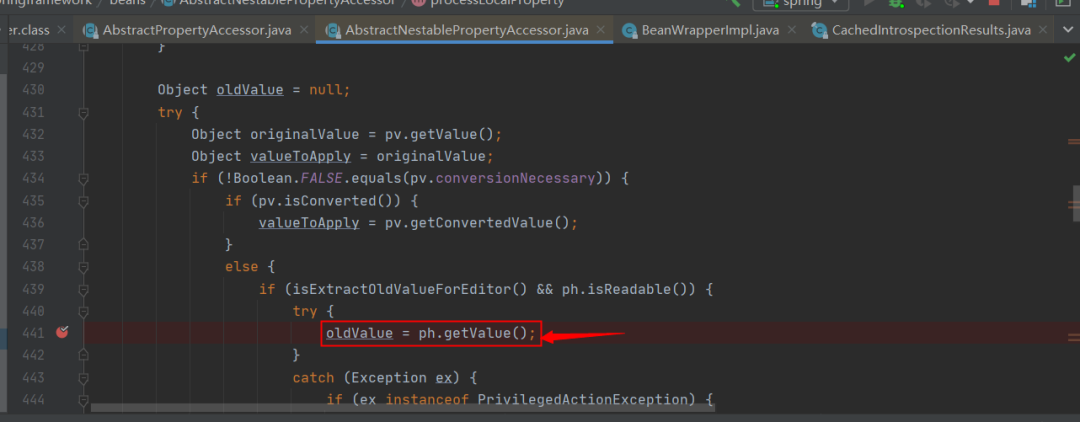 跟入 processLocalProperty() 方法,在 441 行调用了getValue() 方法:
