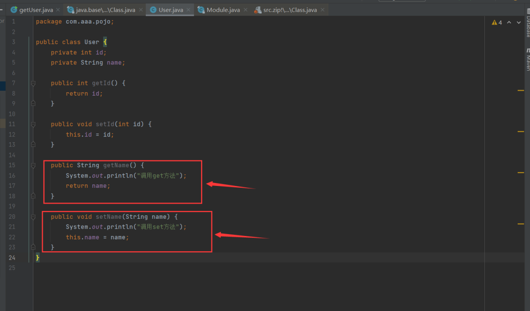下面是 java 内省的代码示例,我用内省的方式调用了 User 类的 SetName 方法: