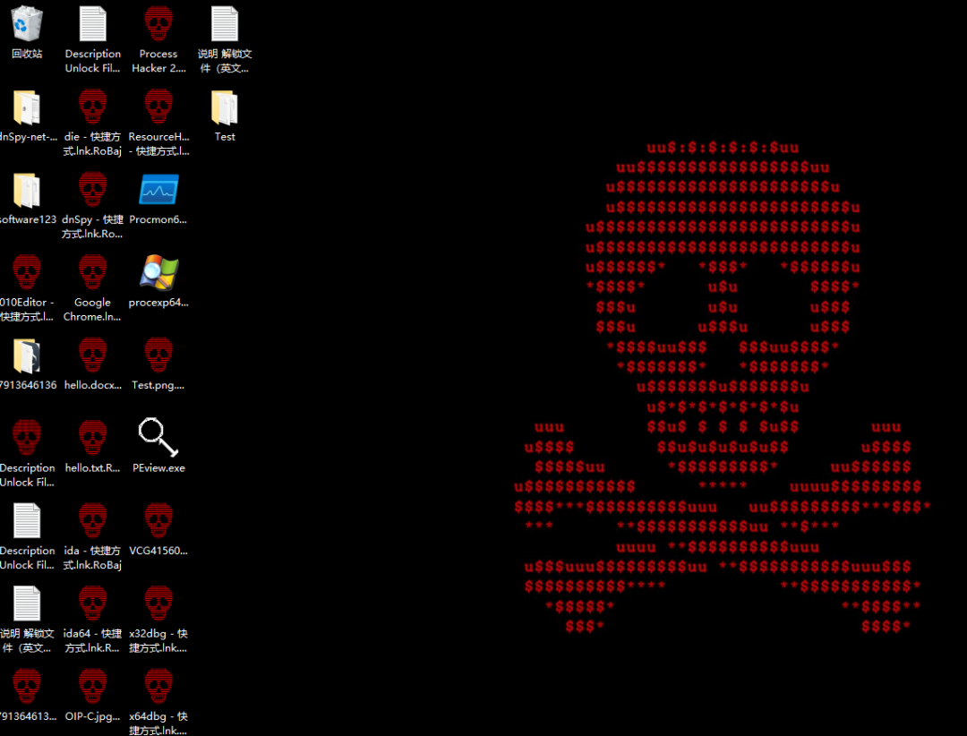 加密完成后,针对被加密文件添加后缀.RoBaj,并修改文件图标为红色骷髅头。