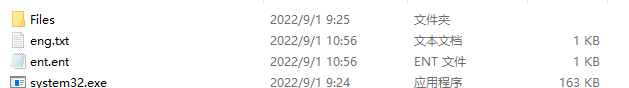 在病毒自解压目录会生成两个新文件即 eng.txt 和 ent.ent,其中 eng.txt 为磁盘的使用情况和生成的密钥,ent.ent 文件中为 eng.txt 中的密钥经过 base64 编码后生成的密钥。
