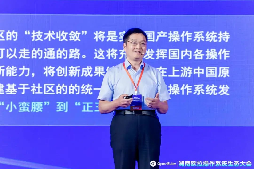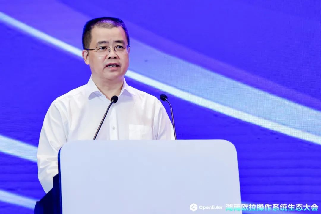 openEuler开源社区理事长江大勇先生表示,欧拉自从2019年底正式开源以来,在生态构建、技术创新和商业落地方面全方面加速,取得了跨越式进展,并在会上宣布openEuler 22.09的创新版将于9月30日正式发布。江大勇对围绕湖南欧拉生态创新中心打造深植湖南本地的欧拉生态表示深切期待,希望集合产、学、研、用力量,通过“生态构建、技术评测、产业聚集、技术创新、人才培养和行业创新”六大服务平台体系打穿生态服务的最后一公里,推进欧拉技术路线在区域落地,构建根植区域生态的自循环、自发展的生态系统。
