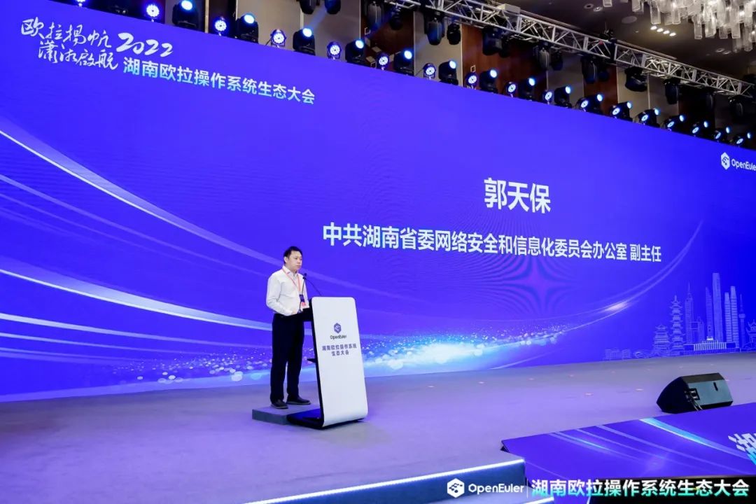 本次湖南欧拉操作系统生态大会由湖南省工业和信息化厅、湖南省人民政府国有资产监督管理委员会、湖南湘江新区管委会、开放原子开源基金会指导,中国软件行业协会、中国计算机学会开源发展委员会、openEuler社区支持,长沙市工业和信息化局、长沙信息产业园管理委员会主办,湖南麒麟信安科技股份有限公司、华为技术有限公司承办。