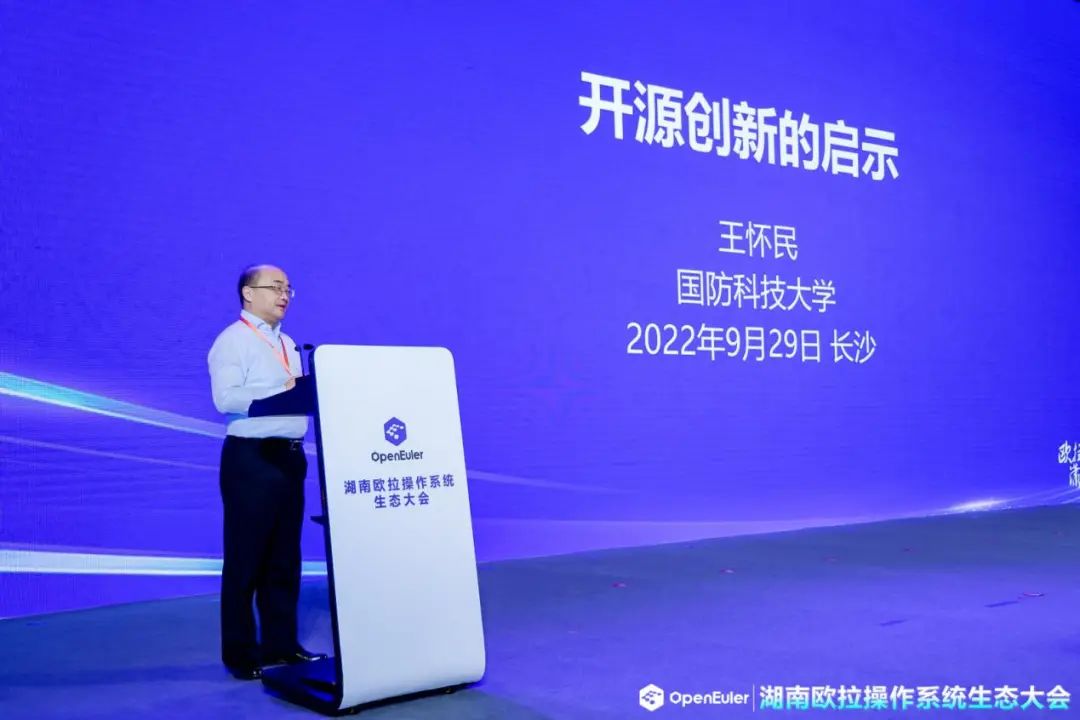 中国科学院院士王怀民教授带来《开源创新的启示》主题演讲。我国开源创新工作已从参与融入发展到蓄势引领的新阶段,王怀民院士表示,开源是应对未来技术发展不确定性的有效途径,积极参与开源是提升我国软件自主发展能力的重要路径,需要把握泛在计算的时代机遇,积极推进我国开源创新。