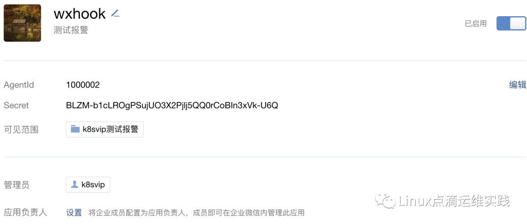 secret: 企业微信("企业应用"-->"自定应用"[Prometheus]--> "Secret") ;