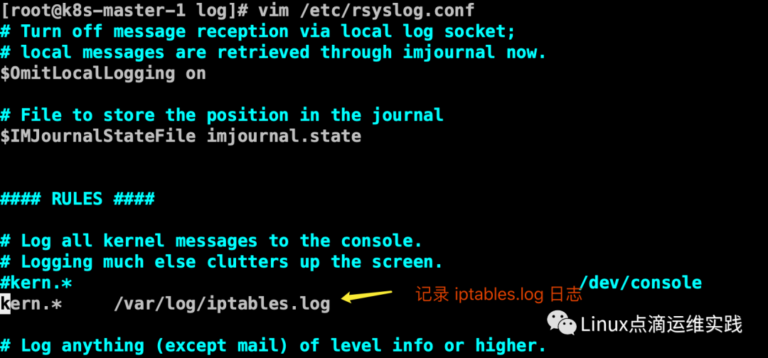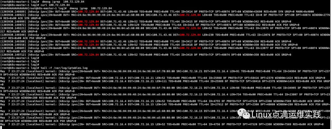 [root@k8s-master-1 ~]# iptables -A OUTPUT -j LOG --log-prefix "[k8svip ipvs]"