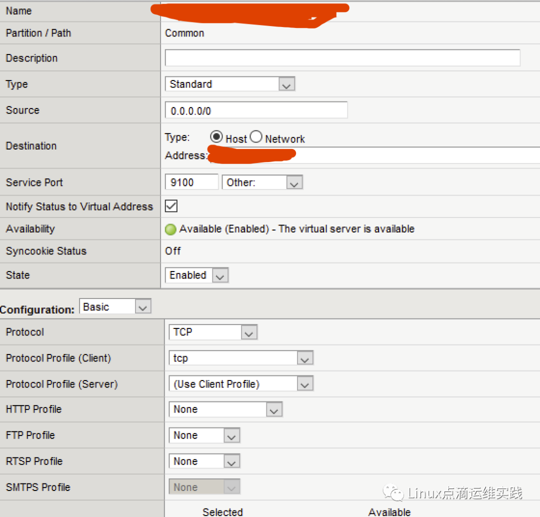 Standard 类型的Virtual Server,即是七层负载均衡,可以选择开启cookie会话保持、Header会话保持、Hash会话保持等应用场景,并且F5 可以 针对 SYN Flood 攻击进行防护等。如果上游服务器是标准的HTTP协议,可以选择关联上BIGIP(F5系统)内置标准的HTTP Profile,如果是非HTTP协议的应用,需要在VS上关联其它Profile或者iRules,根据实际业务需要进行确定;在这种VS类型下,客户端与服务器端的TCP连接完全独立,同时F5默认情况下以客户端源IP和上游服务器建立连接,在打开SNAT的情况下用SNAT地址和上游服务器建立连接,Standard VS的端口永远对外开放,类似Nginx启动了服务后,端口一直存在,upstream 后面的Server down了,也不影响别人来访问Nginx,F5 在此种类型下VS的端口也始终保持开放状态,根据不关注上游pool池中Node的状态。