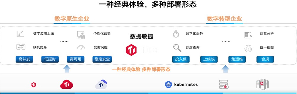TiDB 的很多大型客户已经以 1+N 的方式在部署 TiDB,他们在数据库核心系统用 TiDB 企业级版本,在云上部署一个 TiDB 的云数据库。用户可以自动扩容解决海量数据规模,TiDB 最大的用户已经有近千台节点。所以,无论是对数字原生企业,还是数字化转型企业,比如保险行业,在做数字化转型时,都会让用户没有任何负担地去使用数据库,同时简单而强大,不用关心它的部署模式。