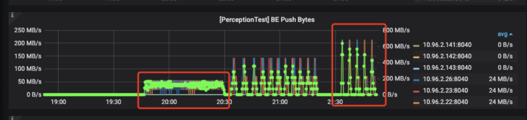 断断续续跟统计代码的位置有关, 因为统计的值更新是在整个文件加载完才更新 be_push_bytes 。而当文件很大时比如需要几分钟才能加载完,我们 promethures 监控的更新时间为1分钟一次,意味着这个值在如果单个文件加载时间超过1分钟的话,不会更新反应出来就是0,但实际导入速度是不影响的。