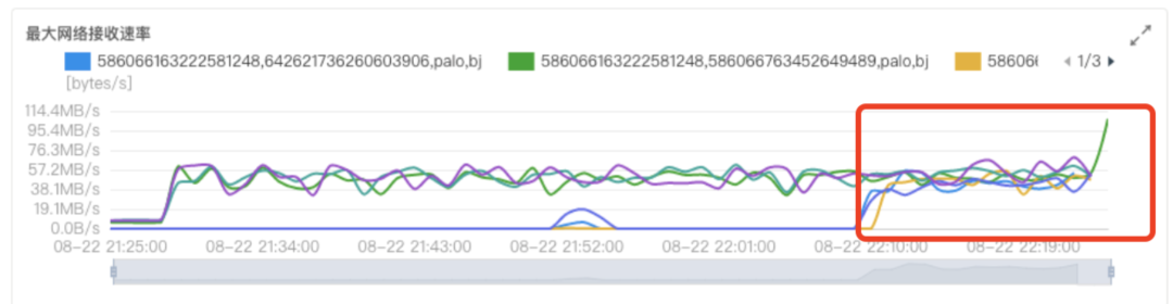 spark ETL 耗时 10 分钟,doris 拉取产物 44 分钟,从监控上看速度限制在 50MB/s