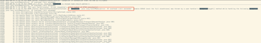 一开始怀疑 executor 给的内存不够,然后我们从16G 调大到64G,没有效果