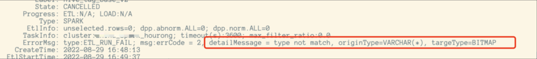 问题7:doris拉取阶段报错 type not match varchar(*) ,targetType=BITMAP