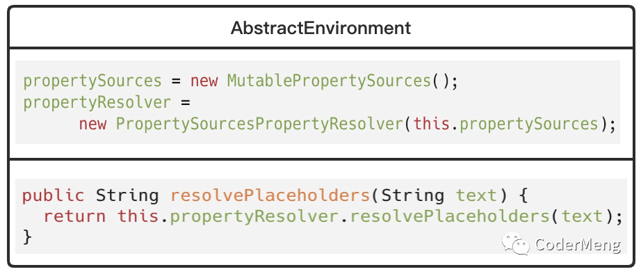 AbstractEnvironment:实现了 resolvePlaceholders 逻辑。