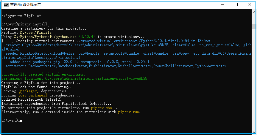 当我们的项目目录中包含 Pipfile、Pipfile.lock 文件时,我们可以在另一台电脑上直接在项目目录中执行 pipenv install --dev 来还原python运行环境和包的依赖: