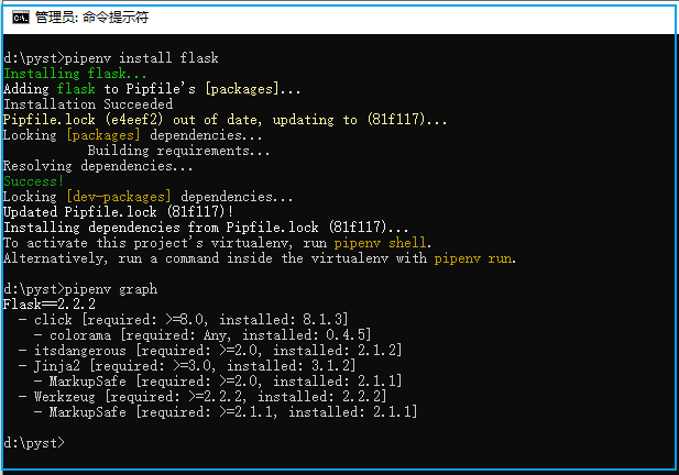 使用 pipenv install 安装完具体的包,可以使用 pipenv graph 查看当前的包的依赖。