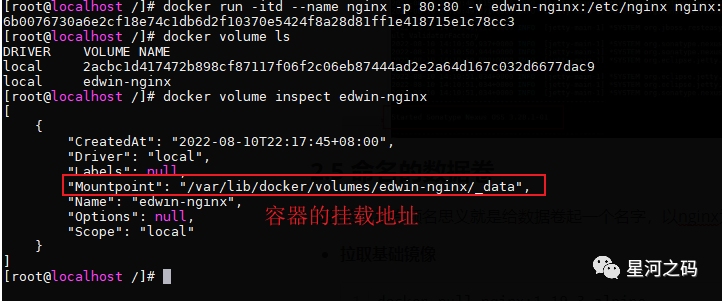 docker run -itd --name nginx -p 80:80 -v edwin-nginx:/etc/nginx nginx:1.19.3-alpine以上命令,没有宿主机目录位置,只有一个名字和一个容器的目录,edwin-nginx 就是数据卷的名字
