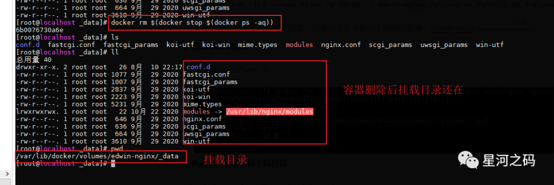docker rm $(docker stop $(docker ps -aq))这是删除刚才启动的容器,如果没有执行上面的不挂载启动,不要执行,这只是为了试验,所以启动了多次,需要把之前的删除,删除也有很多种方式,可以自由选择,这个命令会把所有容器都停止然后删除