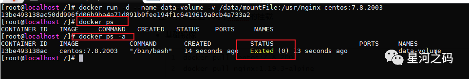 docker run -d --name data-volume -v /data/mountFile:/usr/nginx centos:7.8.2003