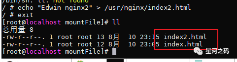 docker exec -it nginx2 /bin/sh「在nginx2中创建一个index2.html文件」