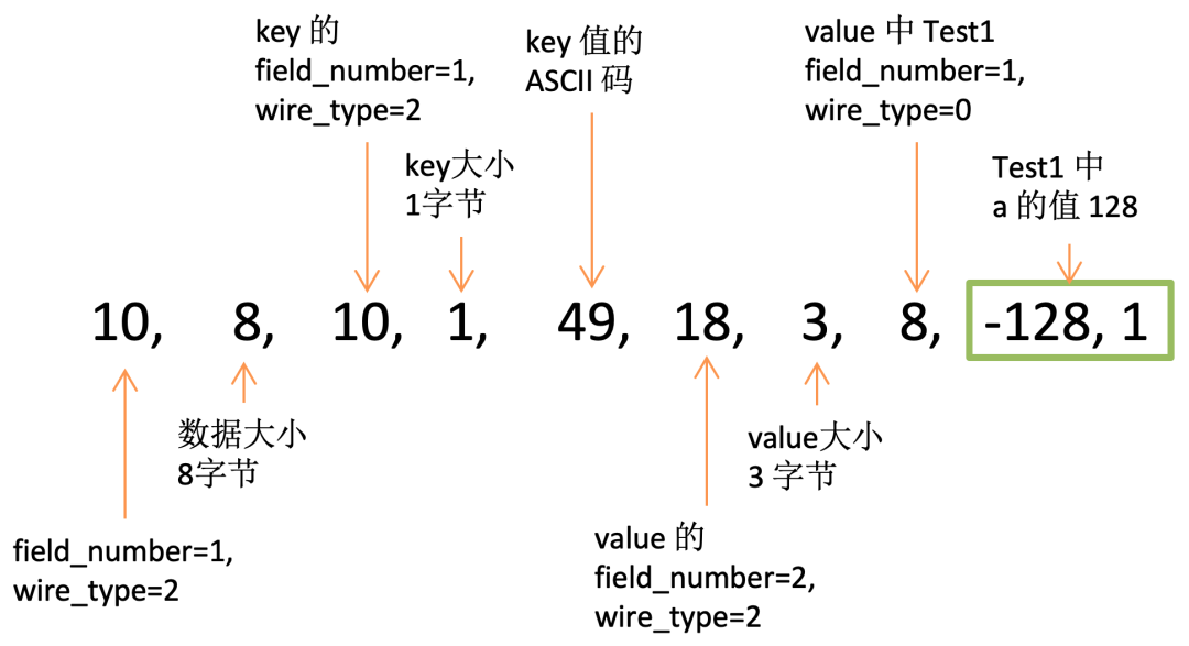 Test1 中的 a 赋值 128,将 Test3 序列化输出如下: