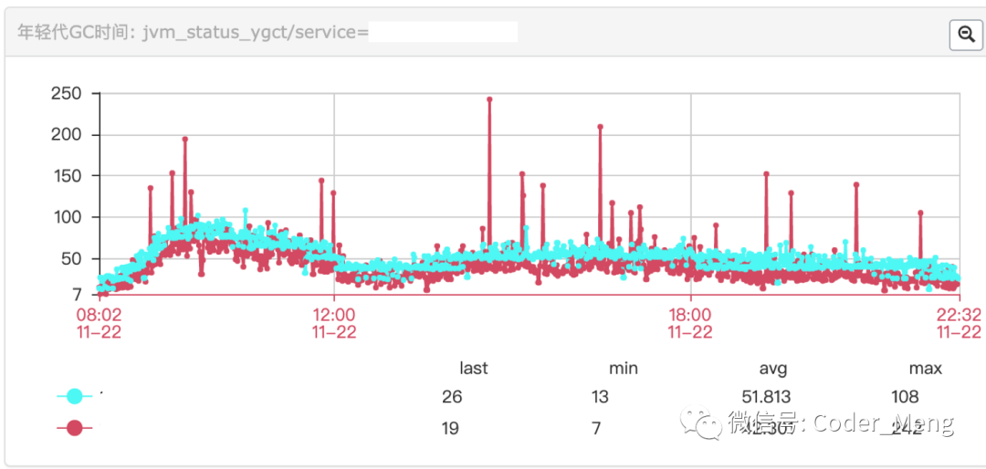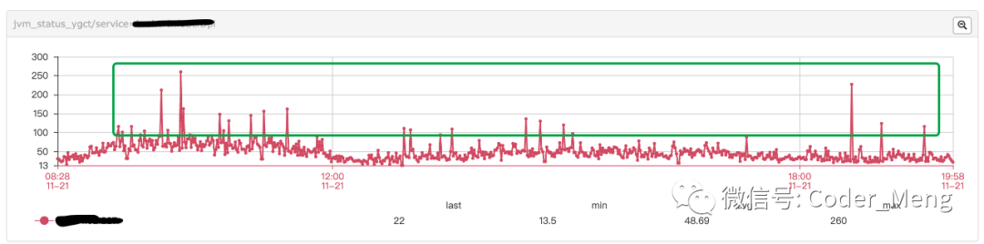 “ 年轻代GC耗时不稳定,偶尔会现突刺”
