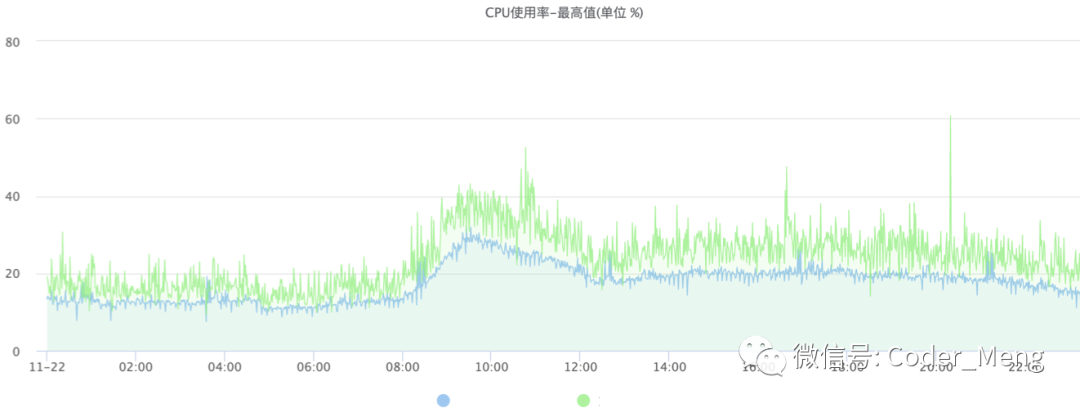 升级后的cpu峰值效果对比,可以看到比较稳定。