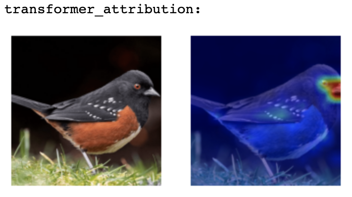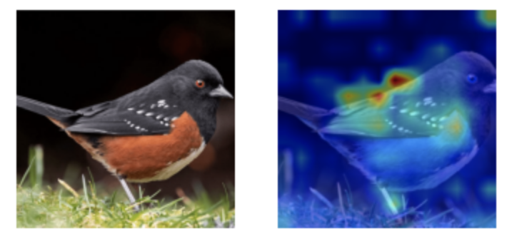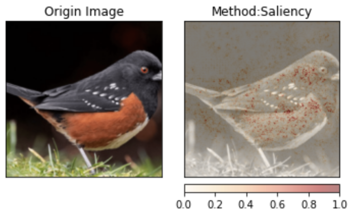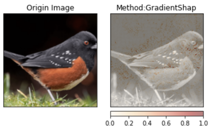 无一例外,每种可解释性算法都表明模型最终的关注点基本都落在了图片中鸟的部分,而不是图片边缘地区的草或者阴影区域。最后,模型将这些具有意义的图片特征(向量)映射到对应的数据集标签中,得到最终结果: