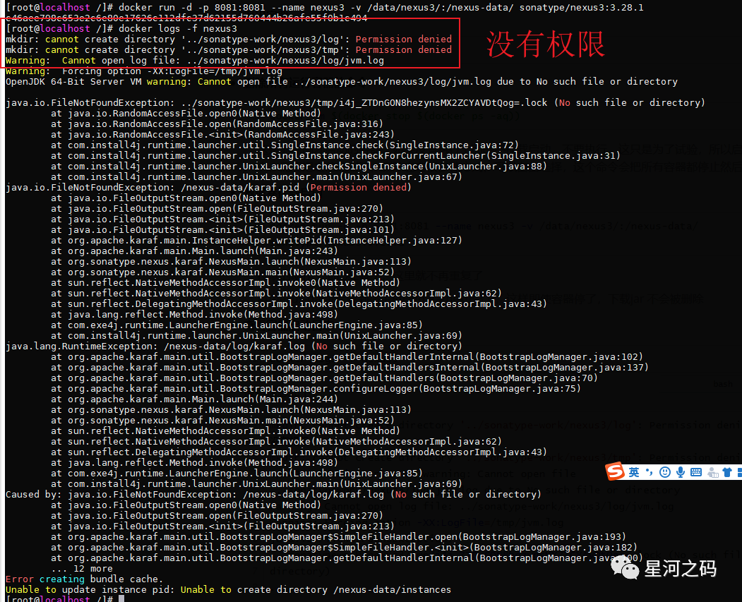 docker rm -f nexus3报错信息告诉我们没有权限,就先删除感刚刚启动失败的容器,然后创建目录赋权后在重新运行