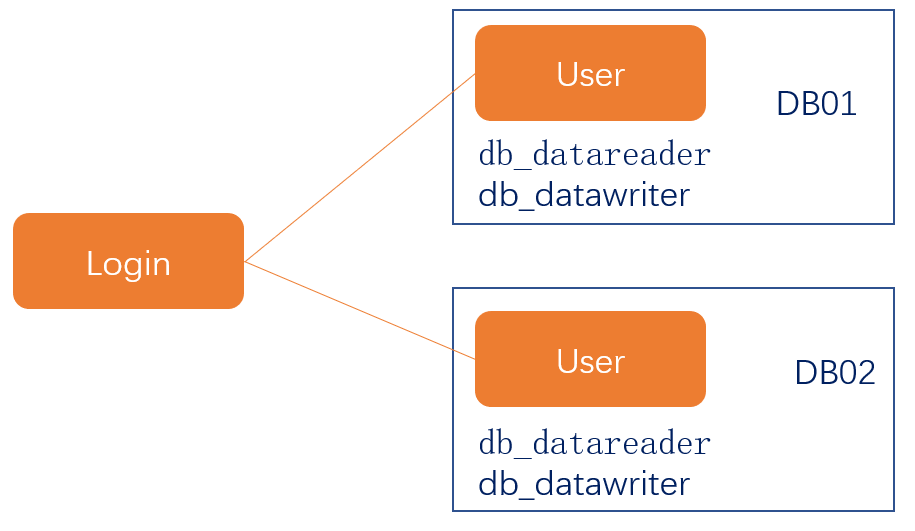 一个登录账号(Login)可以关联多个数据库用户(User),即一个登录账号可以访问多个数据库;