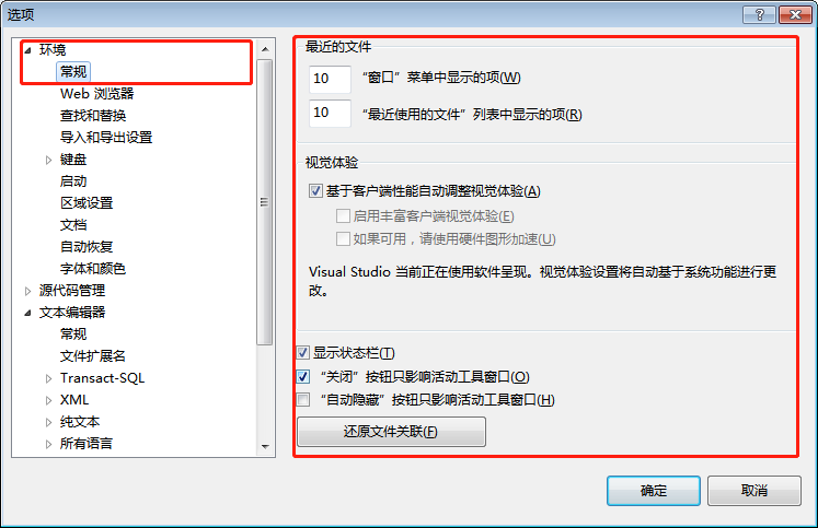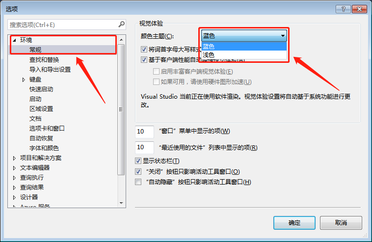 注意:此选项在 SSMS 2016 或更高版本中可用,低于此版本的版本则无法在“环境——>常规”内看到“颜色主题”,例如SSMS 2014 如下图所示: