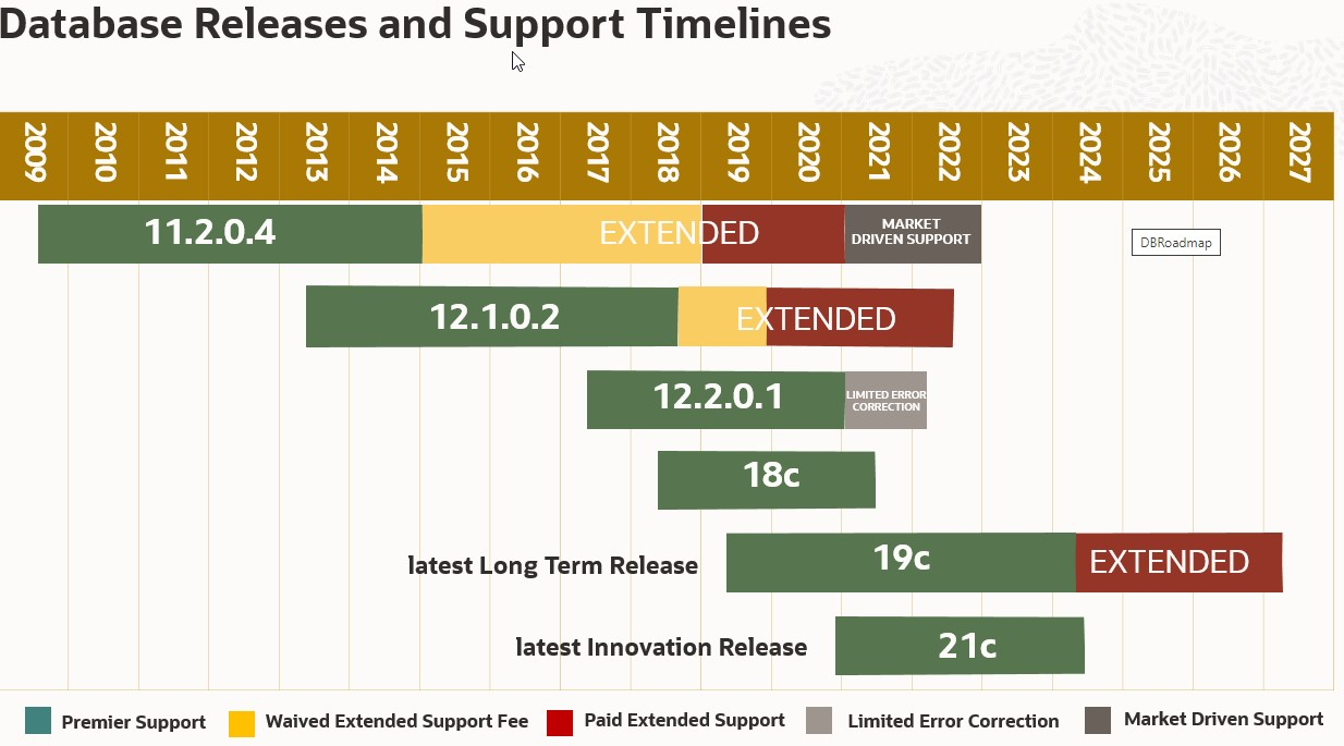 在我们开始之前,让我们看看当前的 Oracle 数据库实现和支持时间表