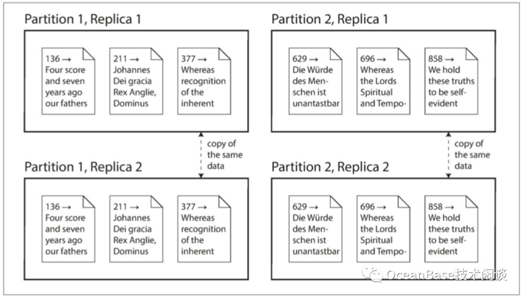 在分布式数据库里,数据随处可见,这是最容易让人混淆的地方。因为数据经过复制和分区后会有两种存在形式:副本(replica)和分区(partition)。
