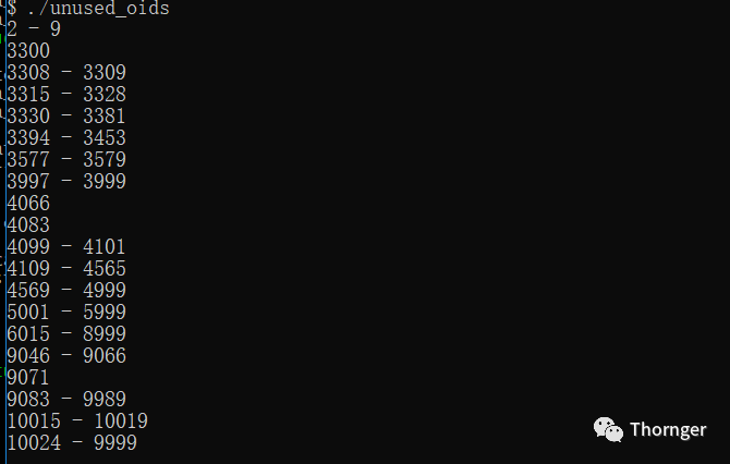1、检查剩余的OID信息,因为系统表至少需要占用一个OID(有兴趣的可以查看genbki.h),我们运行./unused_oids 脚本。